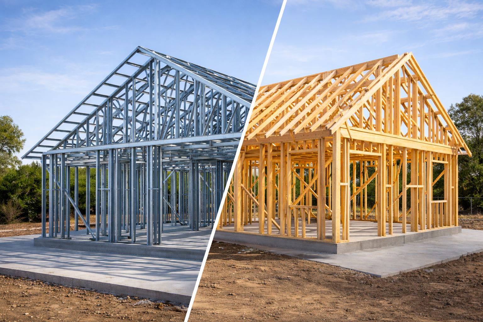 Сравняваме металната и дървената конструкция – разлики в цена, здравина, изолация и срокове за изграждане.